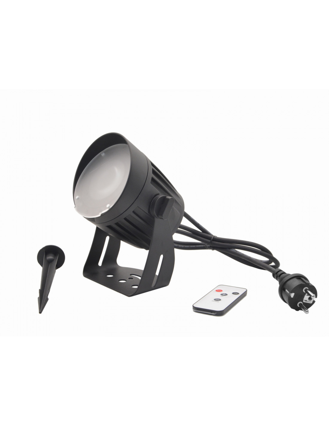 Weather-proof LED spotlight (IP65) with 18 W LED, incl. IR remote control, frost filter & ground stake