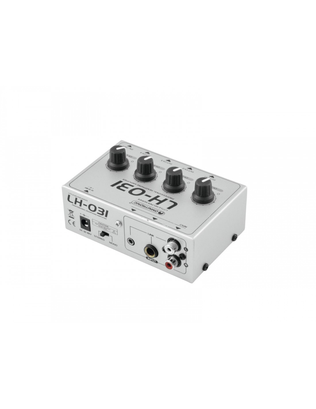 - 1 stereo input (switchable to mono) via RCA, 3.5 mm and 6.3 mm jack connectors