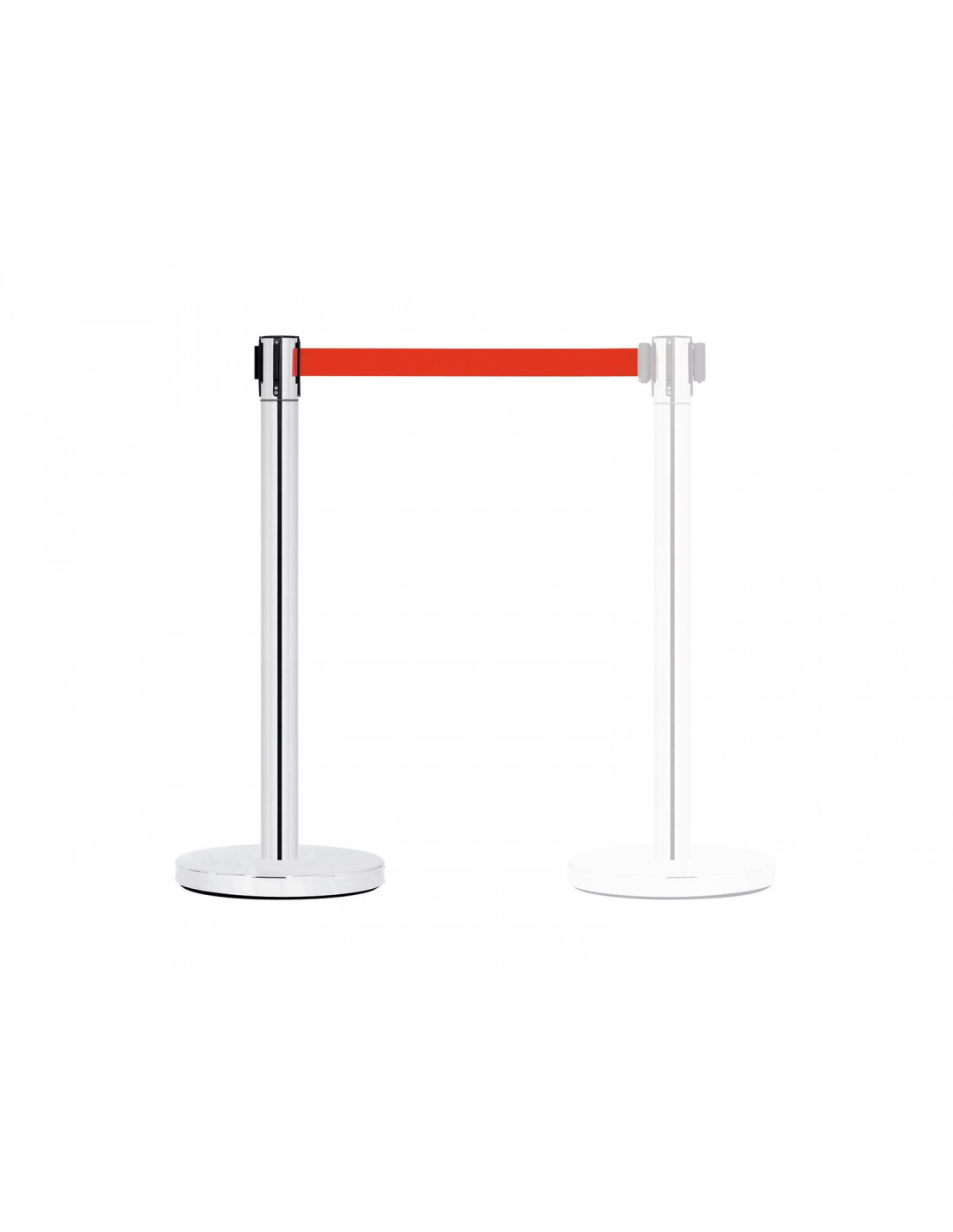 Barricade and direct: Time-saving and elegantThis barrier system enables you to create queues, manage people or close off an area. Whether discotheque, cinema or waiting room: thanks to its quick assembly and disassembly, you can use the system flexibly for the most diverse occasions. High-quality designThe posts of the barrier system are made of stainless steel and are therefore also suitable for outdoor use. The material is highly polished and looks very elegant. The belt system is self-retracting. A belt can be extended up to 3 meters. The belt pulleys are interchangeable and available in red and black.You can connect the end of the belt either with a permanently installed wall bracket or another belt system.