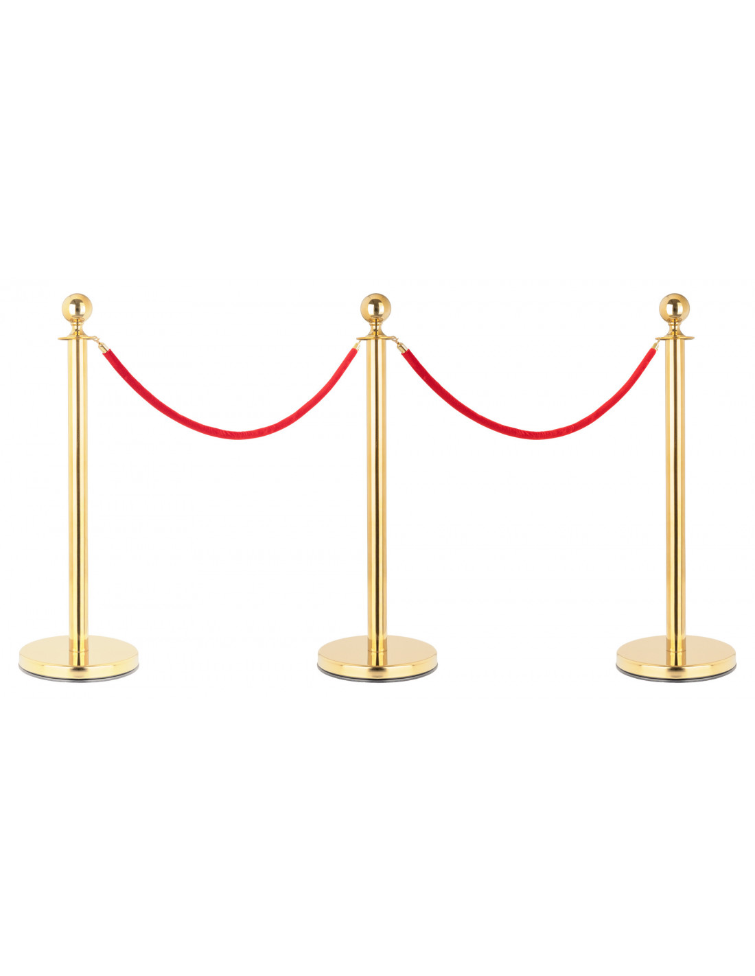 MULTIPURPOSE - professional and level-locking system for concerts, exhibitions, hotels, cinemas, clubs, museums, airports, theaters, award ceremonies, hospitals, department stores and much more, ROBUST CONSTRUCTION - The 5.2 kg stainless steel guide posts have a very low center of gravity and are therefore very stable., VERSATILE - Almost any number of cords can be clicked into the carabiner on the upper ring. As a result, the PLS-150 personal guidance system is extremely versatile and can be expanded at any time -- inside or outside., BLOCKING POST - Height: 96 cm, diameter column: 5 cm, diameter ball: 7 cm, diameter base: 32 cm, height of rope fastening ring: 84 cm, weight per post: 5.2 kg, ROPE INFO- Red cord with a velvety surface, silver snap hook, diameter of rope: 3.5 cm, length of rope: 2.0 m,