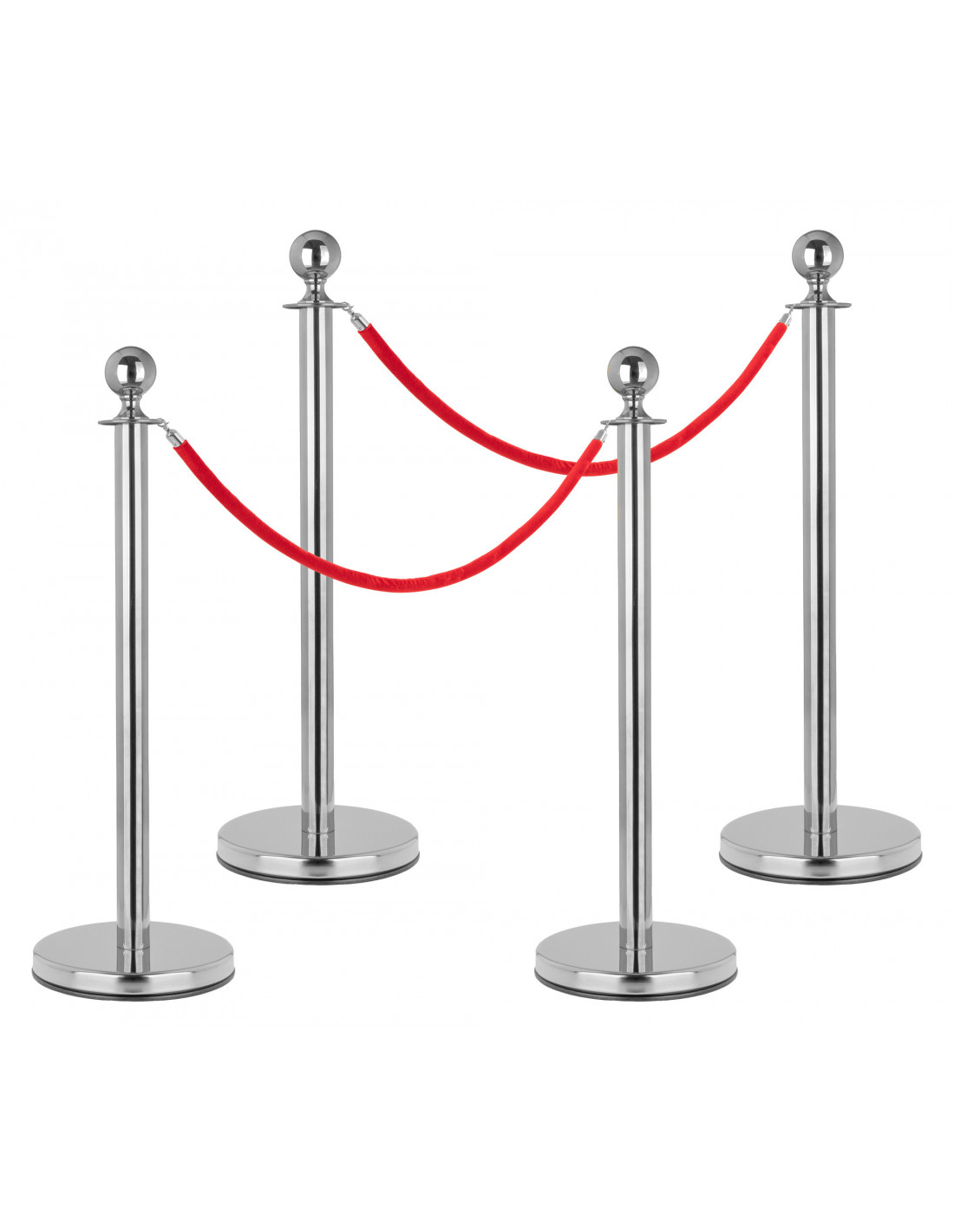 VERSATILE- professional and level full barrier system for concert, exhibition, hotel, cinema, club, museum, airport, theatre, award show, hospital, department stores' and much more, ROBUST CONSTRUCTION - The 5.2 kg heavy guide posts made of stainless steel have a very low centre of gravity and therefore are very stable., VARIABLE IN USE - Almost any number of cords can be clicked into the upper ring with the snap hooks. This makes the PLS-150 personal guidance system very flexible in use and expandable at any time. No matter whether indoors or outdoors., SPECIFICATIONS OF THE POSTS - Height: 96 cm, diameter of the post: 5 cm, diameter of the ball: 7 cm, diameter of the base: 32 cm, height of the rope attachment ring: 84 cm, weight of each post: 5.2 kg, SPECIFICATIONS OF THE ROPE - Red cord with velvety surface, snap hook in silver, rope diameter: 3.5 cm, rope length: 1.5 m,
