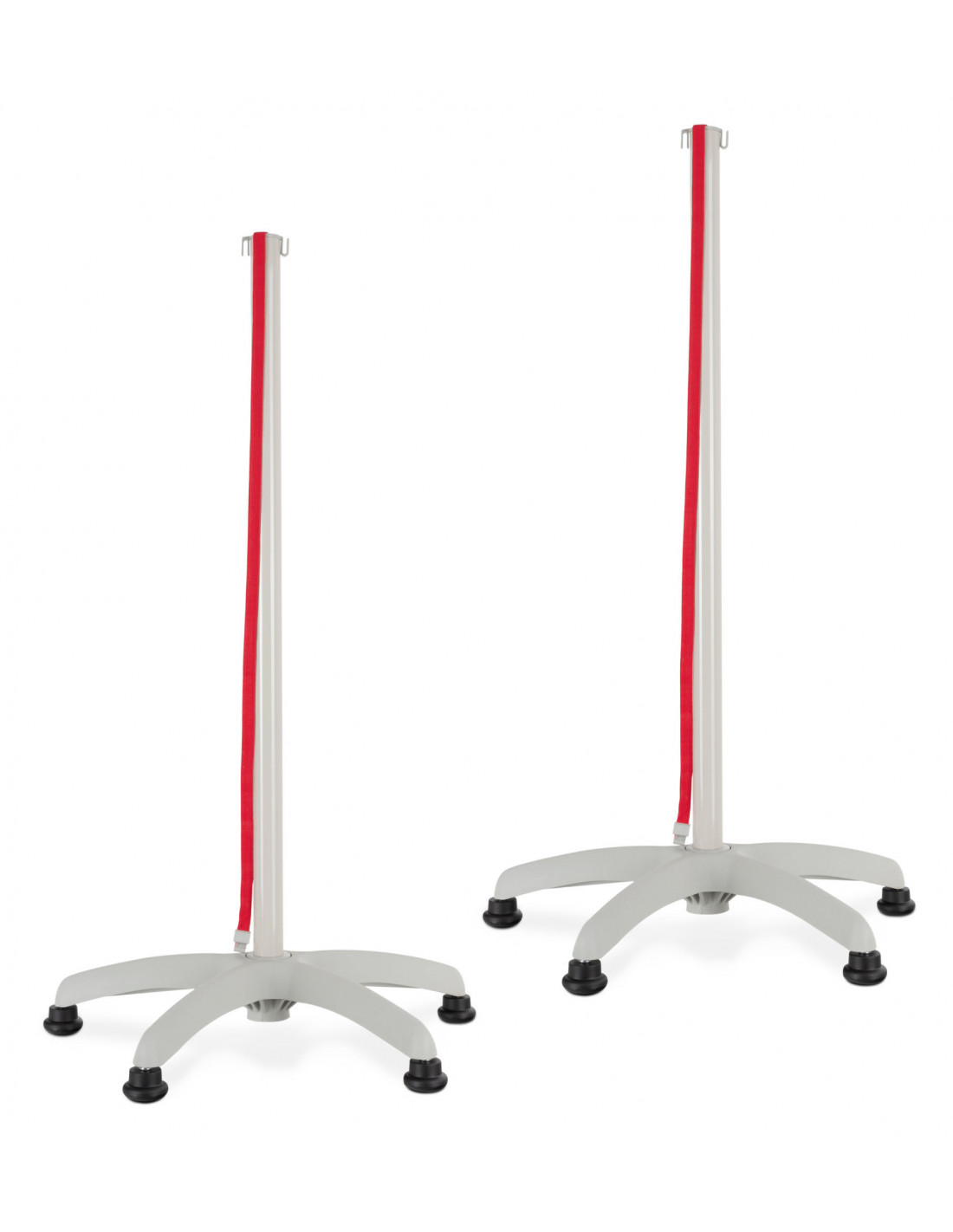 Stand with barrier belt/crowd guidance system, 5 pairs (= 10 posts), Can be combined with other posts, grey steel pipe, red, rugged, flexible barrier tape, Length of strap: approx. 1.8 m (can be stretched to a length of up to 3 m), width of the strap: 17 mm, Suitable for indoor and outdoor use, height of post: 104 cm, diameter of stand area: 60 cm, Good stability, color: grey, weight per post: 2.7 kg,