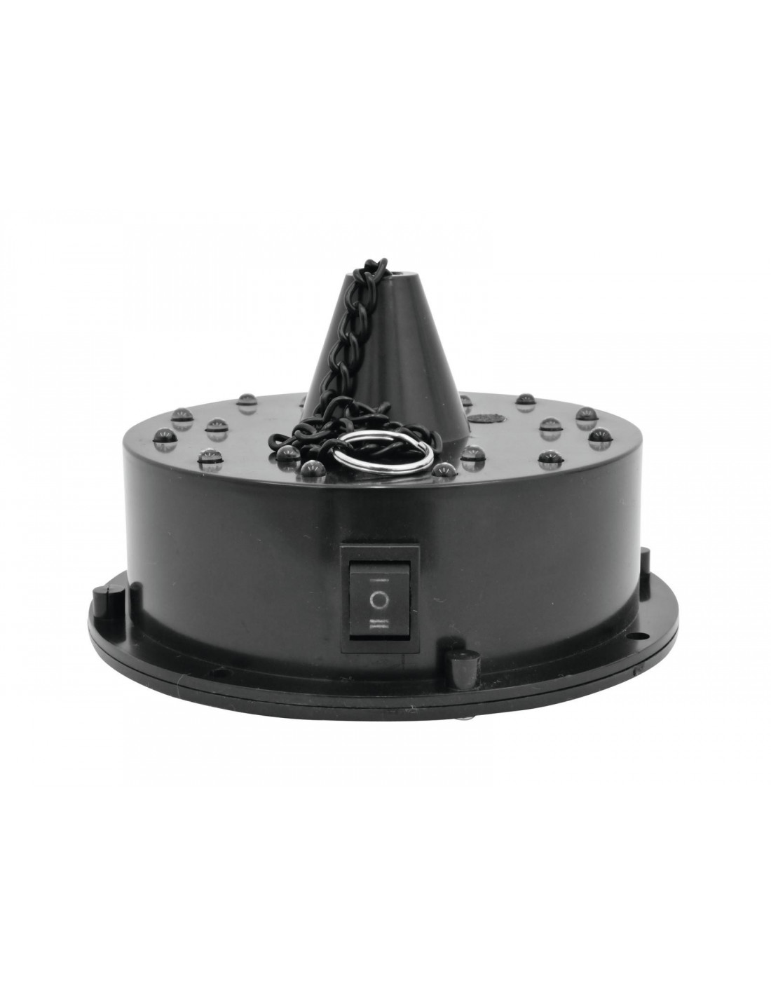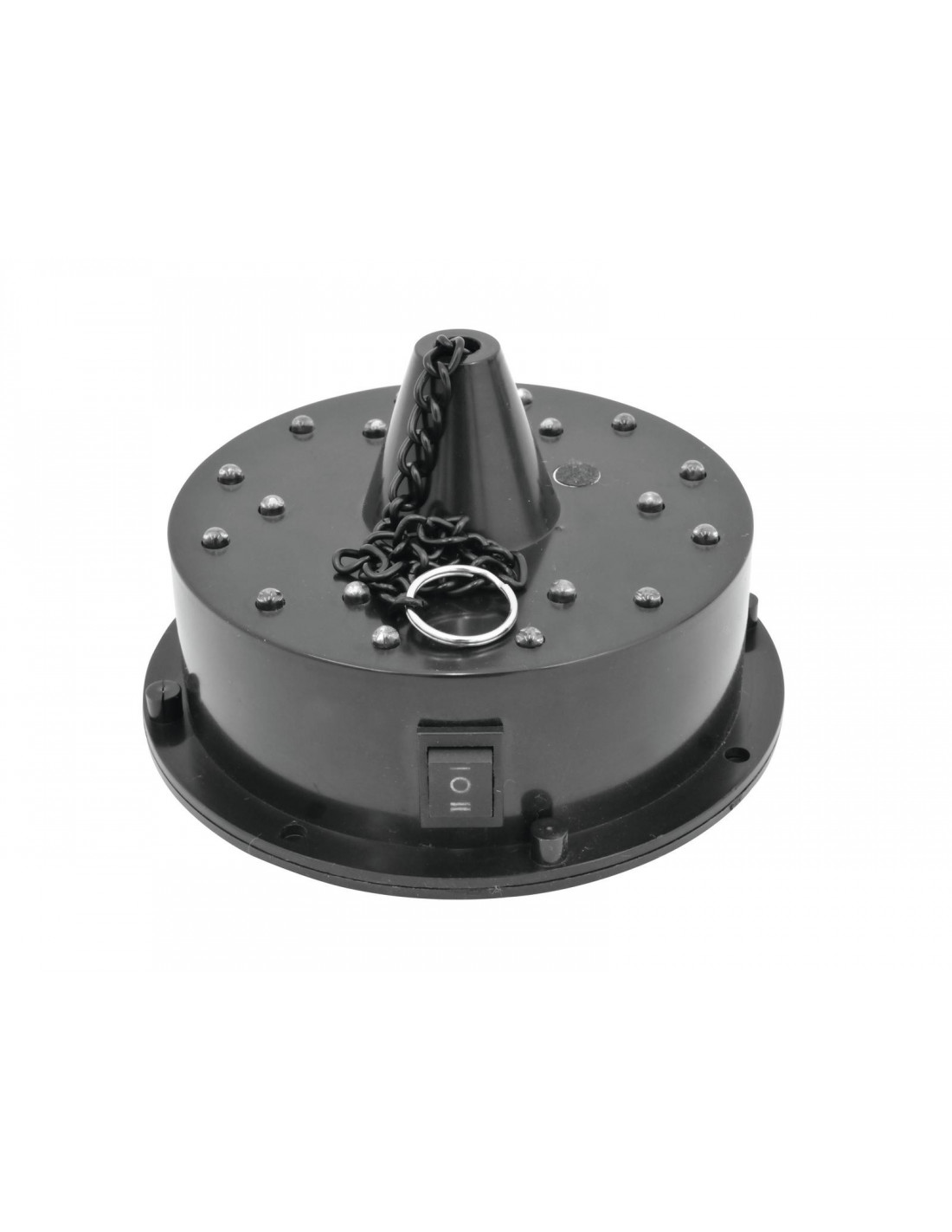 - Plastic housing with 18 LEDs ( 6x white, 4x green, 4x blue and 4x red) which illuminate the mirrorball from above
