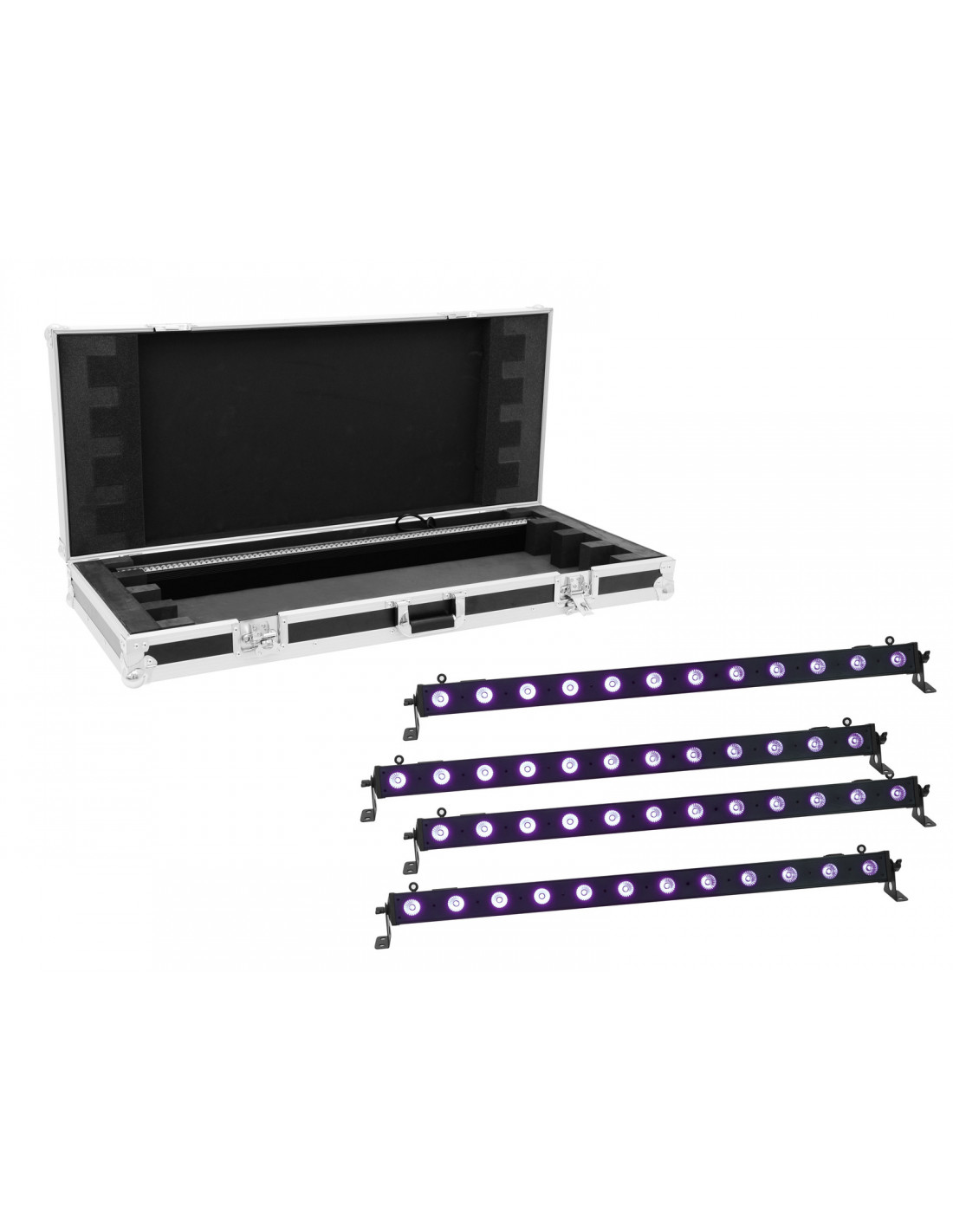 4x Light effect bar (1 m) with UV LEDs including flightcase