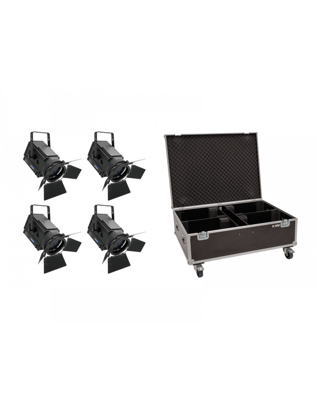 4x fresnel spot with 170 W warm white/amber LED including PRO flightcase