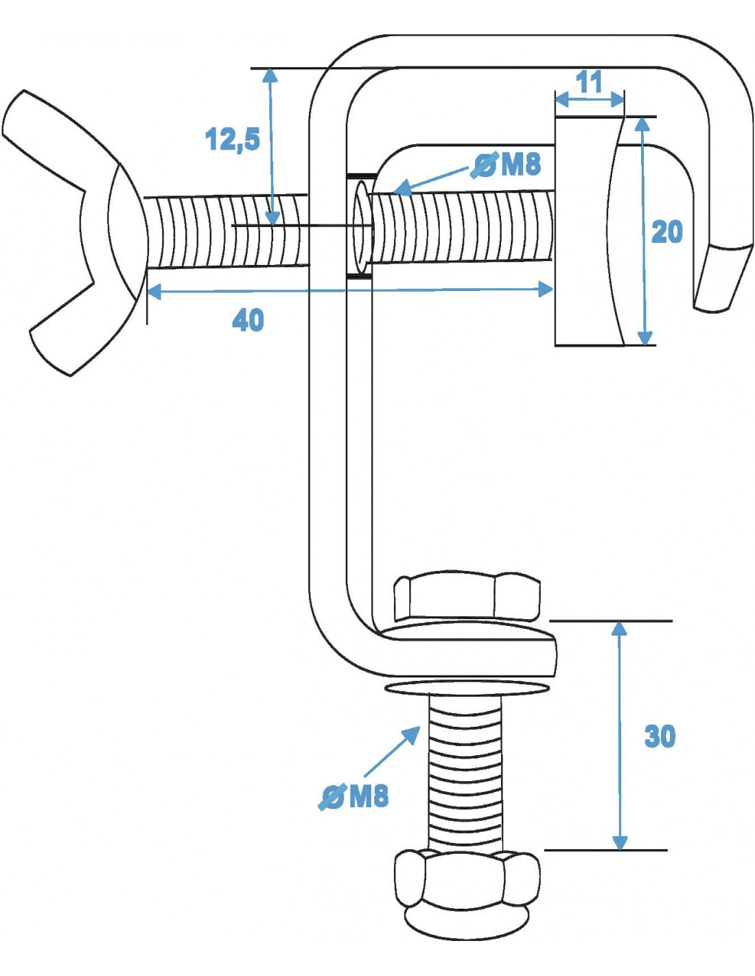 - Hook for installing projectors, lighting effects etc. via a truss system