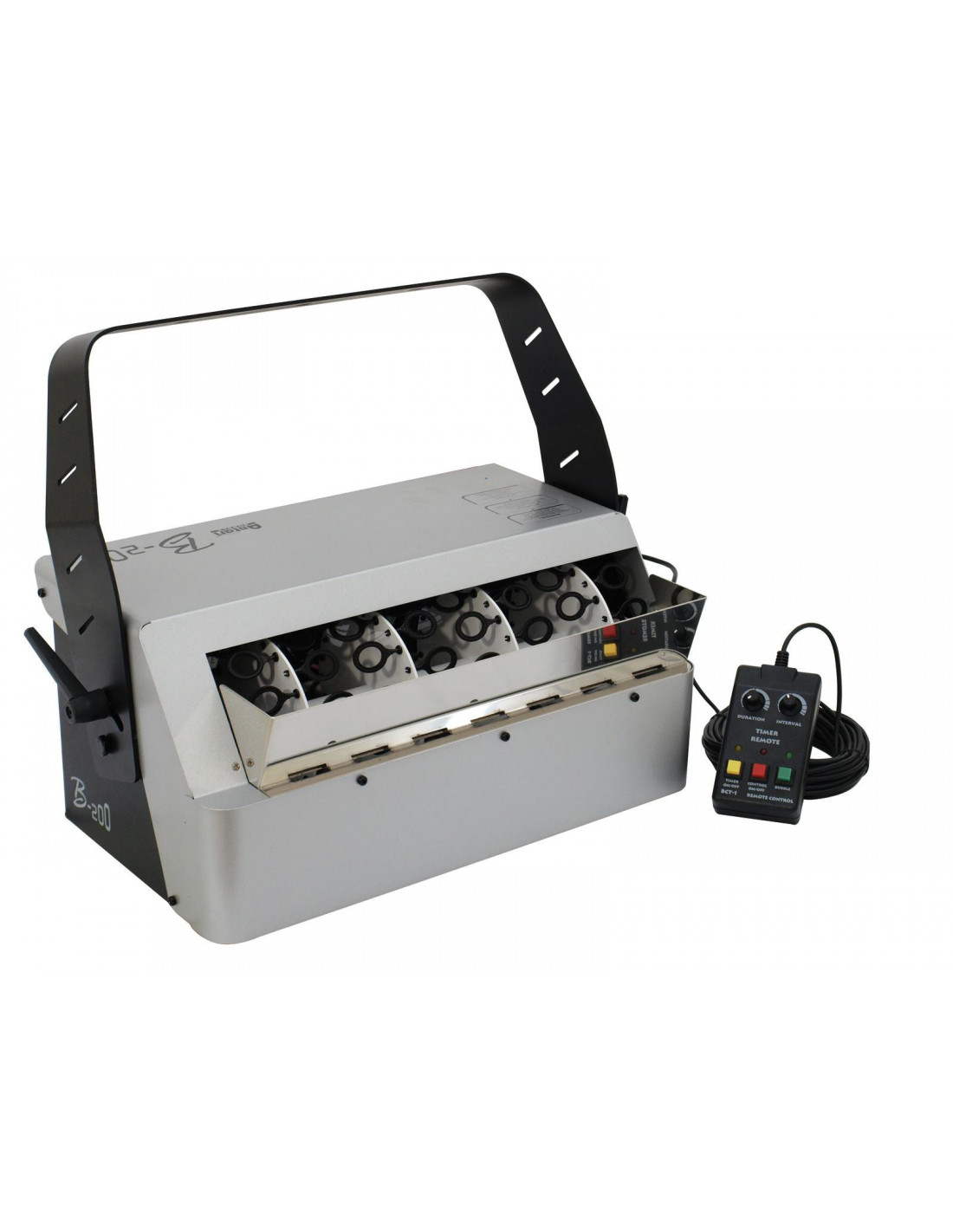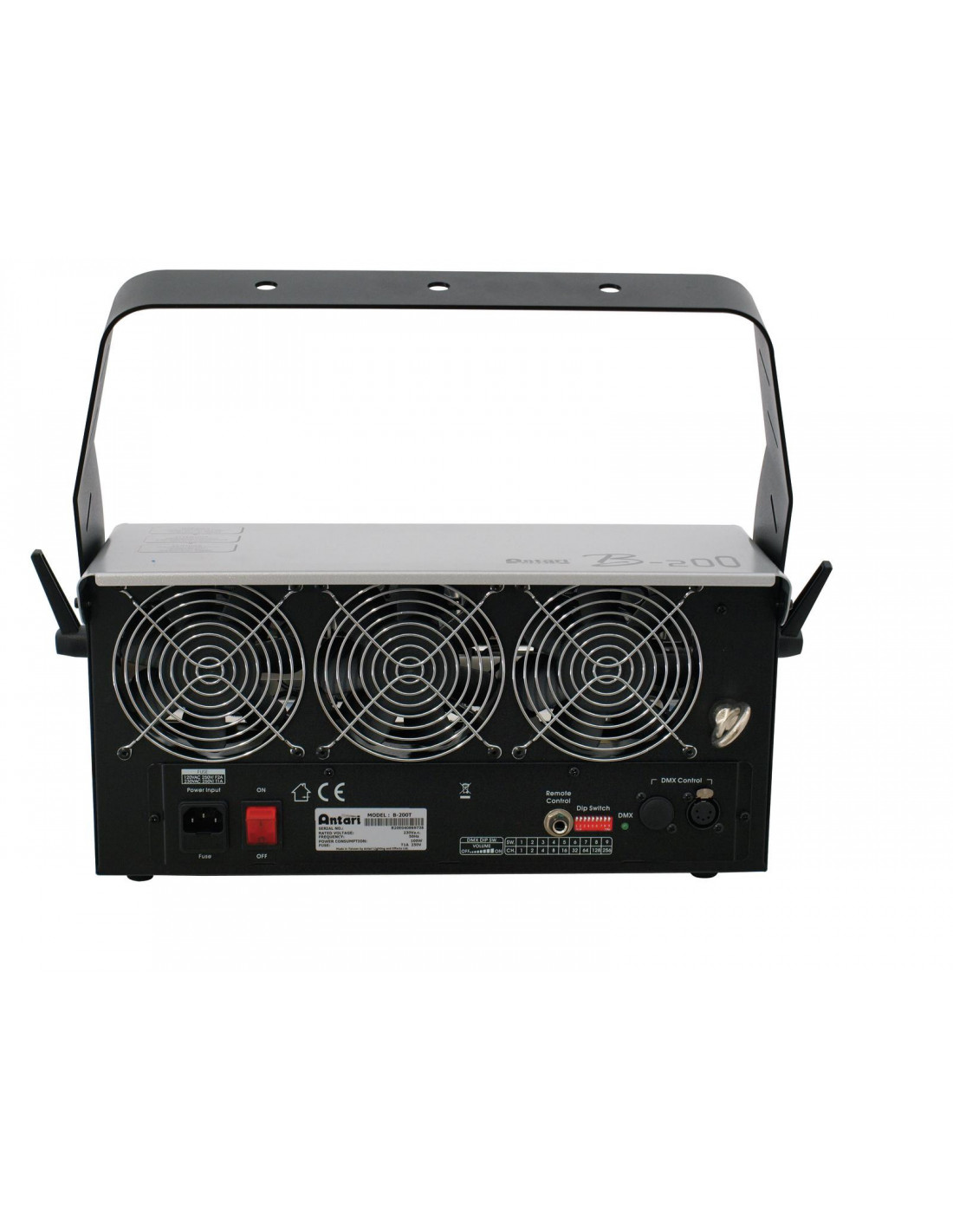 To say the B-200 is a high output bubble machine is too modest. It features four "double bubble wheels" which generate a massive, continuous torrent of bubbles. The set of three fans at the back of the unit spread the bubbles far and wide. Designed with lighting designers, large clubs and theatrical productions in mind, this bubble machine has DMX on-board. This provides for central control on B-200's bubble generation. The machine can also operate with/without optional timer and wireless remote controls. With its large fluid reservoir, the B-200 will pack the venue with bubbles as long as the party lasts.